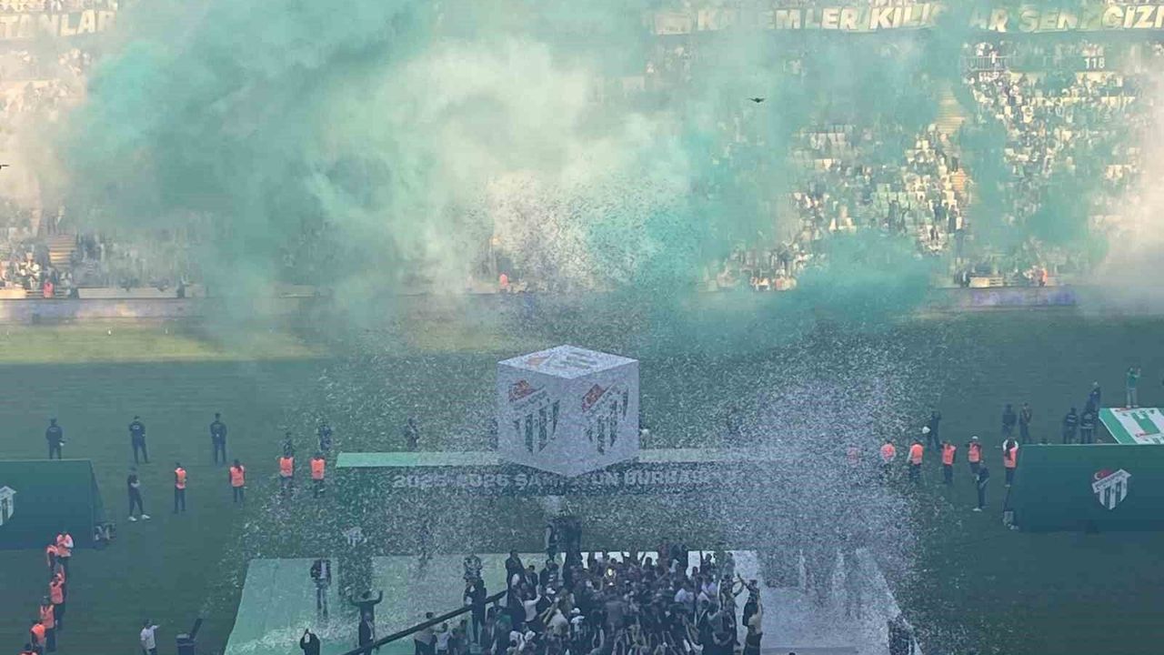 Bursaspor'un şampiyonluk sevinci, Atatürk Matlı Stadyumu'nda düzenlenen görkemli kutlamalarla taçlandı. Sahanın ortasına kurulan şampiyonluk sahnesine çıkan Bursasporlu futbolcular ve yöneticiler binlerce taraftarın önünde şampiyonluk kupasını kaldırdı.