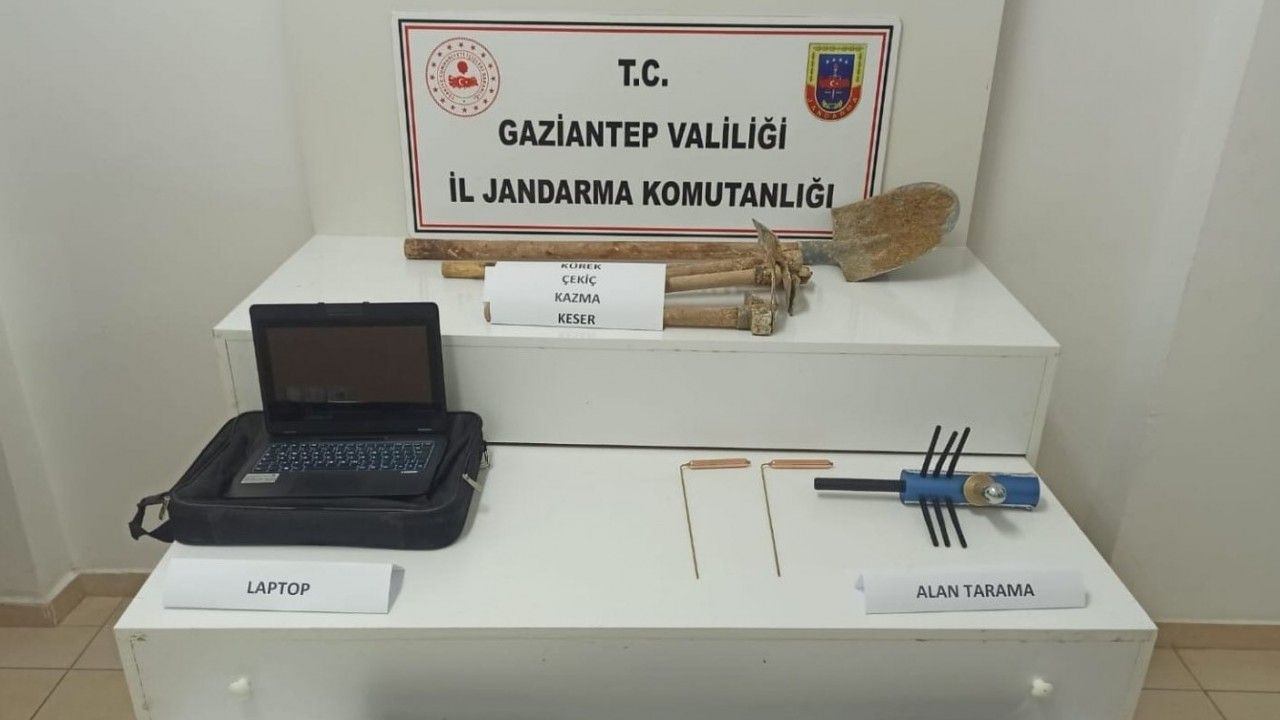 Gaziantep İl Jandarma Komutanlığı ve Cumhuriyet Başsavcılığı koordinesinde tarihi eser kaçakçılığının önlenmesine yönelik çalışma yapıldı. Çalışma çerçevesinde, Araban ilçesinde icra edilen önleyici kolluk devriyesi esnasında arazide define bulmak amacıyla izinsiz kazı yaptığı tespit edilen Ö.K., M.G., H.Y., Ö.Ş., C.B., E.Ö., A.K., E.E. ve M.A. isimli 9 şüpheli suçüstü yakalandı.