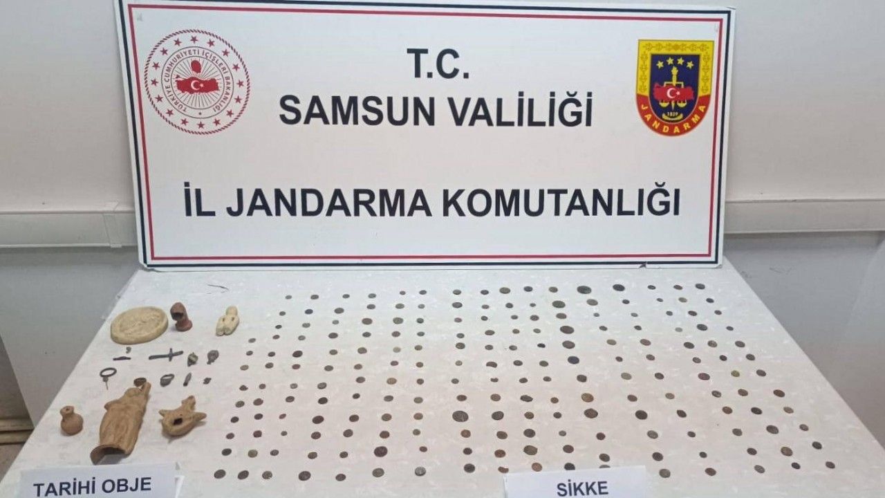 Samsun’un Çarşamba ilçesinde jandarma ekiplerince düzenlenen operasyonda tarihi eser niteliğinde 201 adet sikke ve 17 adet obje ele geçirildi.