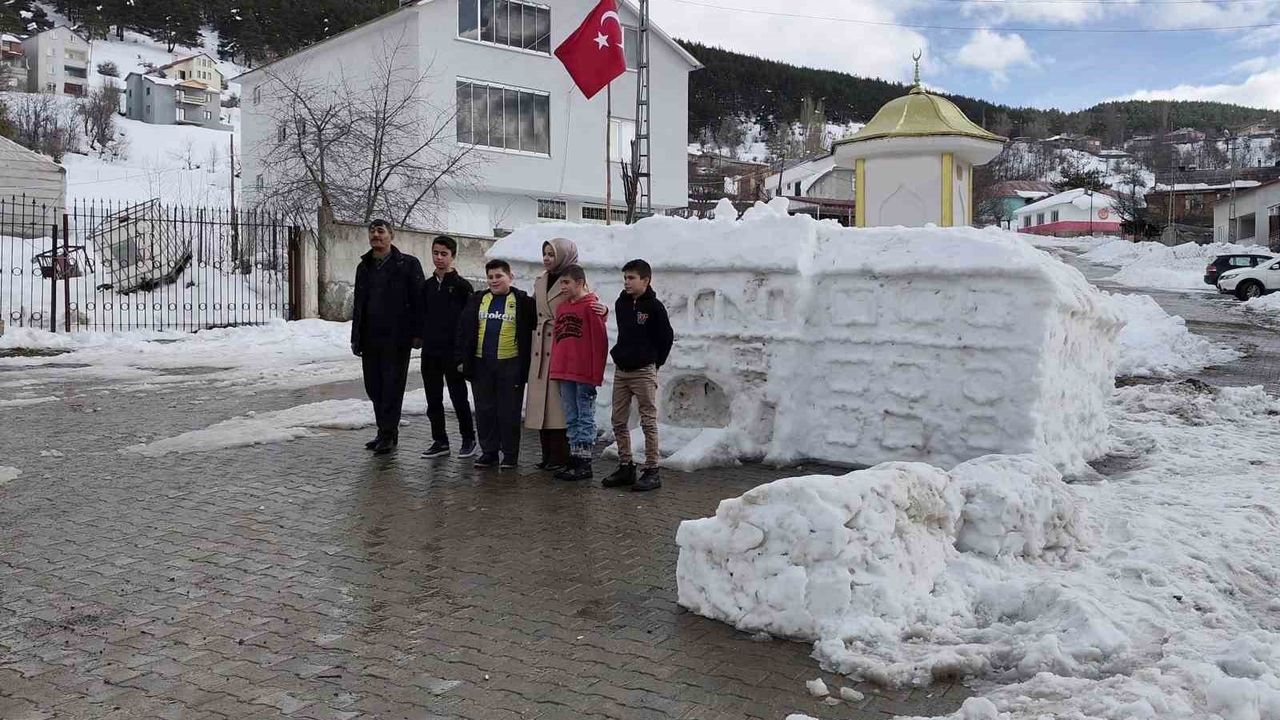 Gündem olan ekibin İstanbul ziyaretinin ardından köy meydanında yaptıkları tarihi Sivas Valilik binasının kardan maketi de oldukça ilgi gördü.